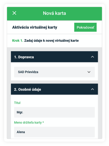 Vydanie novej virtuálnej dopravnej karty (platnosť 1 rok)