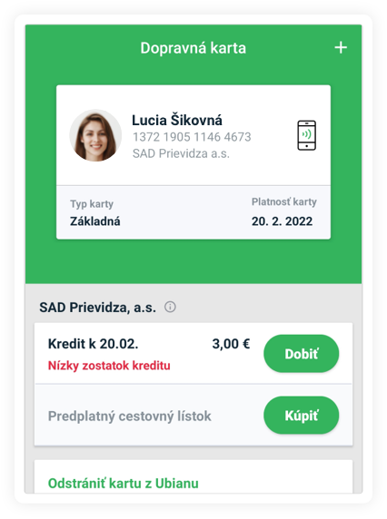 Virtuálna dopravná karta je platná jeden rok, predĺženie platnosti môžeš urobiť jednoducho v aplikácii Ubian.